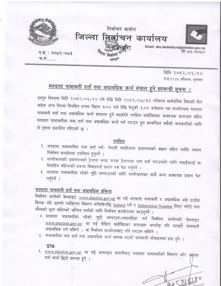 » मतदाता नामावली दर्ता तथा अधावधिक कार्य संचालन हुने सम्बन्धी सूचना ।